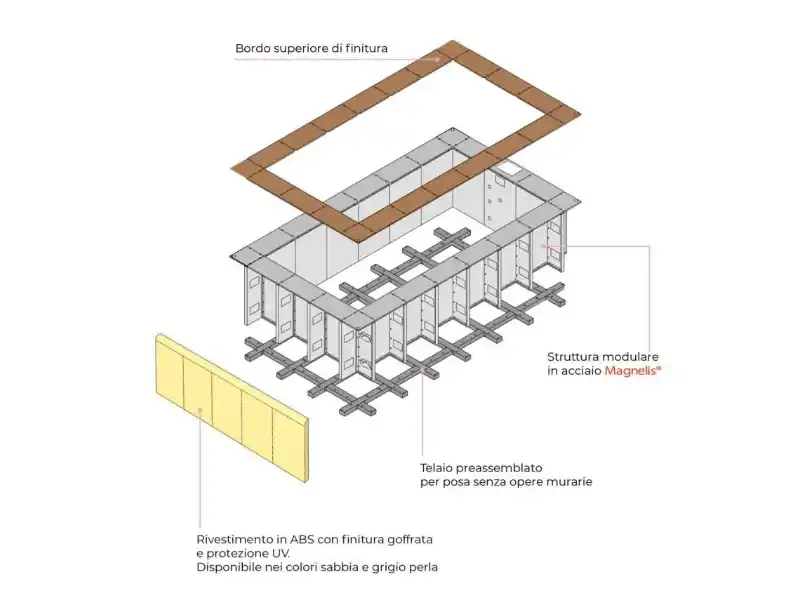 •  Rivestimento Esterno ABS: Finitura Goffrata – Protezione UV – Colori Sabbia e Grigio